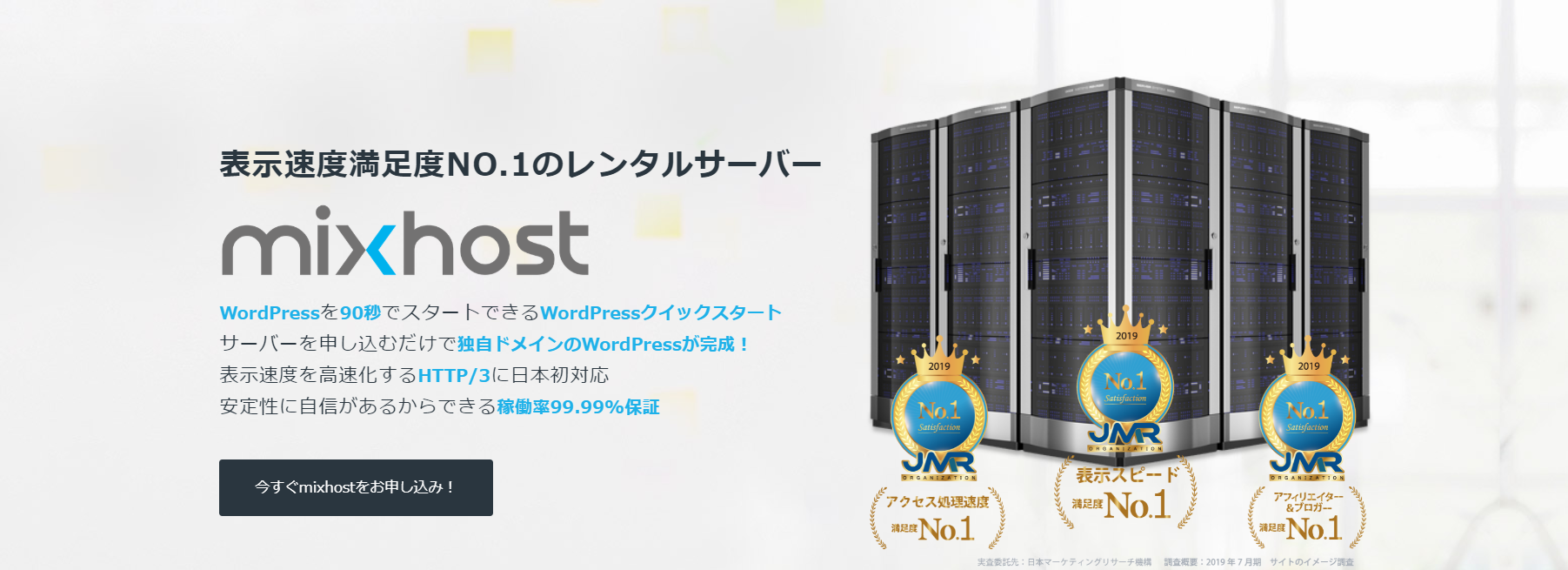 mixhostはアクセス処理速度や表示スピードも申し分なく、多くのブロガー達から高い評価を得ているレンタルサーバーです。